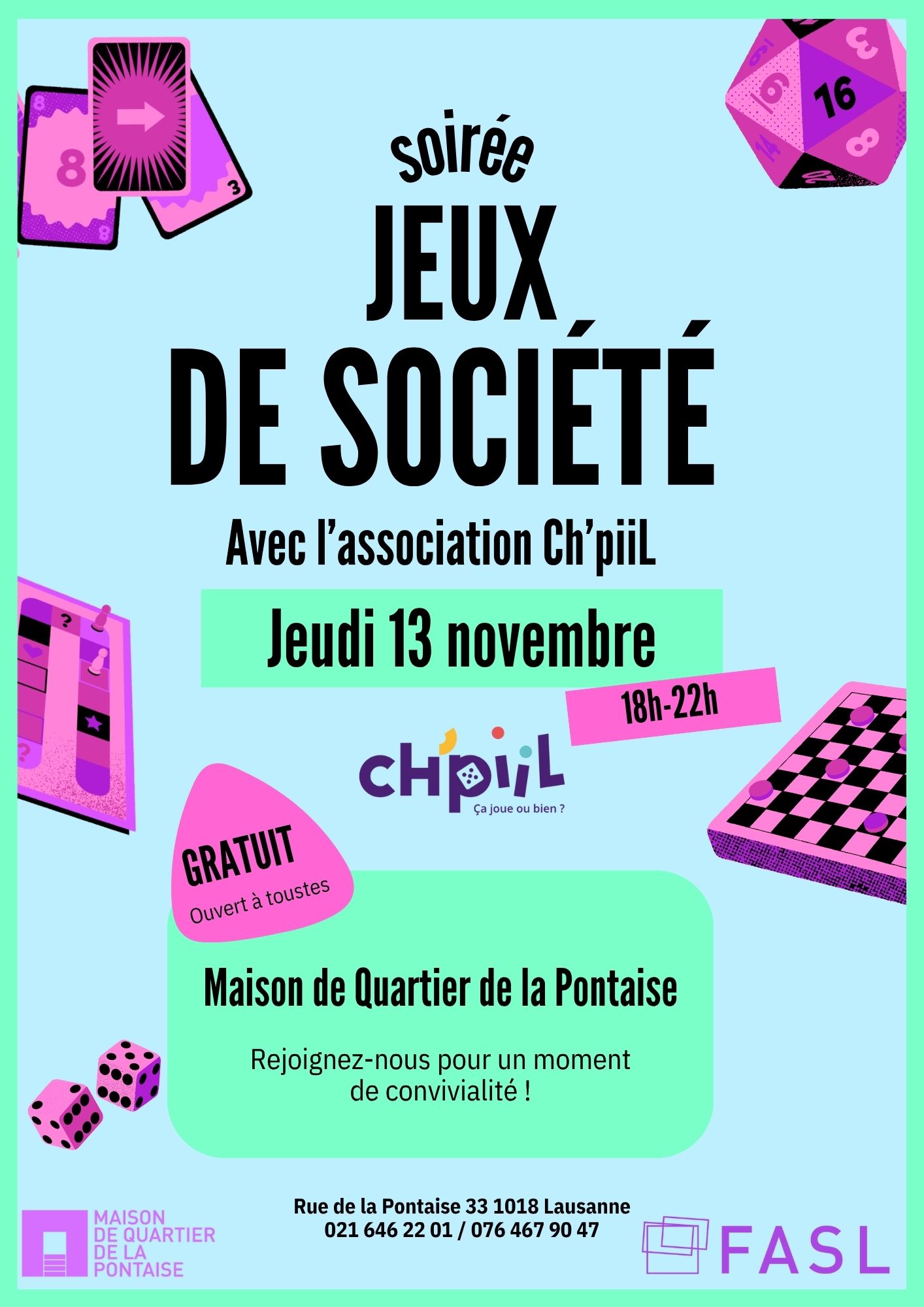 Vous êtes les bienvenu-e-s à la première édition de la soirée jeux avec l'association Ch'pill à la Maison de Quartier