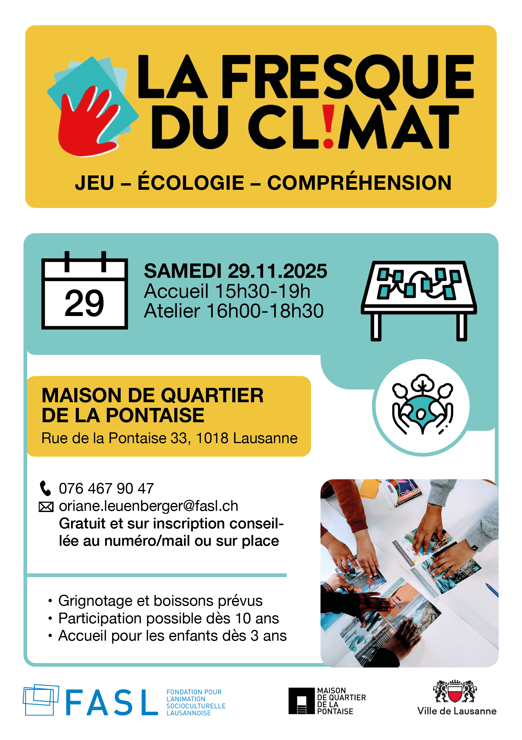 Venez participer à cet atelier ludique, créatif et convivial pour comprendre les enjeux climatiques actuels, en construisant en collectif une fresque résumant les mécanismes du changement climatique, s'appuyant sur les données du GIEC.